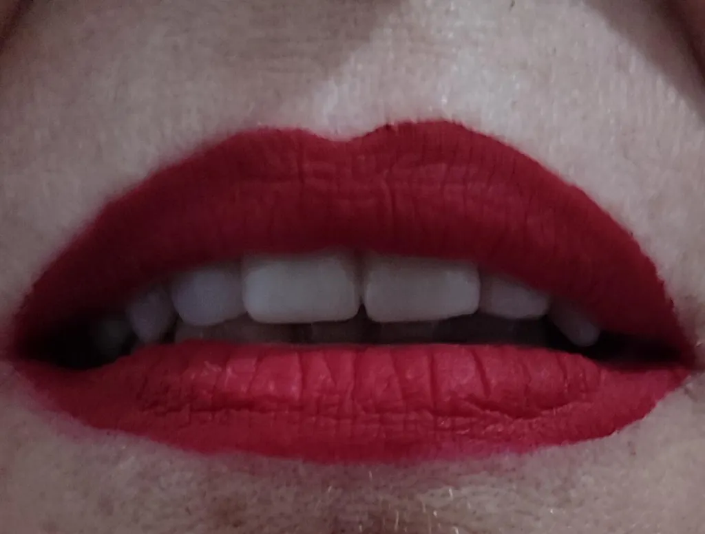 Eu gostei muito do batom, porque tem o aspecto matte, sem deixar os lábios ressecados e não transfere.